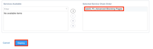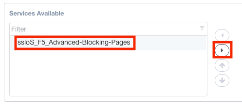 Select the ssloS_F5_Advanced-Blocking-Pages Service and click the arrow to move it to the right