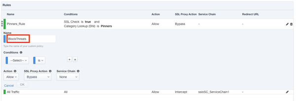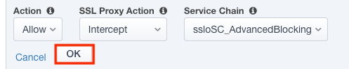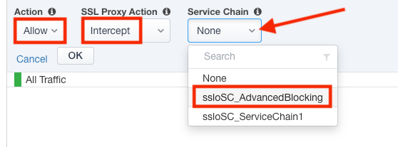 Set the Service Chain to the one created previously, “AdvancedBlocking”