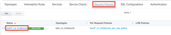 From the Configuration screen, select Security Policies then click the policy you want to edit, “L3_Outbound” in this example.