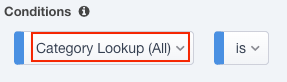 Configure the Rule Conditions by selecting Category Lookup (All)