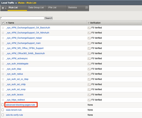 Click on the iRule named “advanced-blocking-pages-rule” (you may need to expand the iRule List)