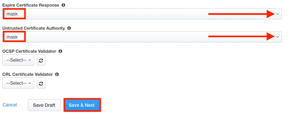 Near the bottom, set Expire Certificate Response and Untrusted Certificate Authority from Drop to Mask.