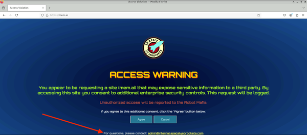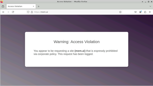 From a test client, when attempting to go to https://mem.ai you will be presented with the following.