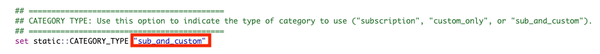 Set the CATEGORY_TYPE to “sub_and_custom”