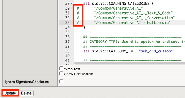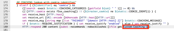 Scroll down to the COACHING lookup section and replace user-coaching-html with your custom HTML page, Custom-Coaching-2 in this example.