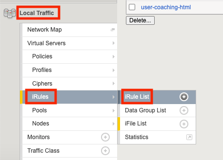 To use a Custom Coaching Page, navigate to Local Traffic > iRules > iRule List.