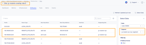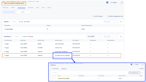 On the F5 Distributed Cloud Console, we created a network segment named jy-nutanix-sjc-nyc-segment and we assigned it specifically to the subnet 192.170.84.0/24: