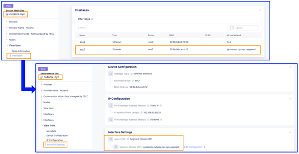 To extend jy-nutanix-sjc-nyc-segment from SJ to NYC, simply assign the segment jy-nutanix-sjc-nyc-segment to the NYC CE local subnet 192.168.60.0/24 in the F5 Distributed Cloud Console: