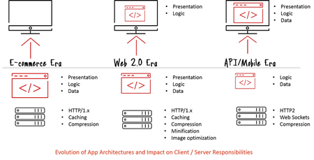 Modern apps are changing. And I’m not just talking about the rush to containerize apps or put them in the cloud. I’m talking about app architectures and, more specifically, the techniques behind them that are having a significant impact on networking and app services. No, not microservices or containers. I’m talking about how apps are composed and the division of duties within an app architecture. Way back in the early days of the web (in the ‘e-commerce’ era), the need for speed propelled a number of “acceleration” technologies into data centers everywhere. These “front-end” acceleration services were focused primarily on caching and compression at the time. It was an appropriate response to an app model in which the server-side response bore most of the burden for delivering an app. The traditional “layers” of an application: presentation, logic, and data, were all bound up in a single – often large – response wrapped up in HTML. Web 2.0 and AJAX started to change that. More of the presentation layer of the app was moved onto the client (the browser). Responses became smaller and the notion of dynamic content drove us toward newer acceleration techniques designed to address the unique challenges of these applications. Image optimization, inlining scripts, and reordering of content became an expected response to improving the speed with which these apps performed. Connection (TCP) related optimizations became imperative as a single web app started to consume often eight-times the number of connections (and commensurately, compute and memory) to achieve the dynamism users craved. Today, REST-based API-driven apps are becoming (if they aren’t already) the norm. At this point, presentation logic is almost completely contained within the client via JavaScript-based frameworks like JQuery and Angular. The presentation layer has always (necessarily, some might say) been the fattest of the three layers. That remains true, but with most of it constrained to the client (browser or native mobile app), the burden on the server-side has been dramatically reduced. Responses to queries are now JSON, for the most part, and often fit within the somewhat restrictive size of a single packet (about 1460 bytes). HTTP/2 and WebSockets with request pipelining capabilities and binary payloads have made connection (TCP) management on the client side nearly impotent in terms of improving performance because it’s implicitly included in the protocols themselves. The days of needing to multiplex connections are gone thanks to protocols like SPDY and HTTP/2 that provide the same result and require only a single connection. For most apps, the images that used to provide visual cues (the icons) have moved from individual images to sprites to web icon sets from offerings like Font Awesome. With relatively tiny footprints, such icon sets provide the same visual cues at a greatly reduced data footprint and reside client-side, not server side, making image optimization less of an problem for most modern applications. The scripts driving the UI and app logic on the client side, too, are almost universally offered in an already minimized form. Developers know to grab the “.min.” script for deployment and judiciously load them from their hosted sites – already backed by a CDN and cached for more immediate and timely response. In the past year the percentage of HTML being served via a CDN has risen to 20%. For JavaScript, it’s 21.5% of the Quantcast Top10k and 7% of the BuiltWith Top Million. But Lori, you’re thinking, then why is the average size of a web page going up and not down? Well, all those scripts and presentation logic are heavy. The actual size of a web page is going up because it’s now containing much of the presentation and logic that used to be delivered from the server. It’s still delivered initially by the server, but then most of the actual interaction with the app occurs dynamically, with very small chunks of data being exchanged with the server side logic. Consider the change in the composition of a “page” over the past year. Where fonts, JavaScript, and CSS have increased, HTML has actually decreased by 18%. That’s a significant change. What this all means is that the focus of “front-end acceleration” services are changing, necessarily. The focus has to shift from manipulating and modifying content to streamlining and managing protocols. Compression may be beneficial – particularly on the first visit to an app – and caching thereafter, but performance improvements where modern apps are concerned will be best achieved through the use of protocols like HTTP/2 and optimization and offload on the server-side of the equation. Apps are changing; not just where and in what they’re deployed, but their basic composition. That means the technologies and tools traditionally used to improve performance and address capacity issues has to change, as well.398Views0likes0Comments
