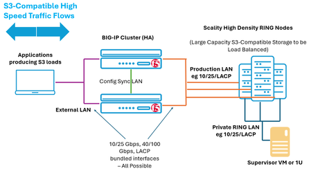 The load balancing of F5 BIG-IP, both locally within a site as well as for global traffic steering to an optimal site around large geographies, works effectively with Scality RING, a modern and massively scalable object storage solution. The RING architecture takes an innovative “bring-your-own Linux” approach to turning highly performant servers, equipped with ample disks, into a resilient, durable storage solution. The BIG-IP can scale in lock step with offered S3 access loads, for use cases like AI data delivery for model training as an example, avoiding any single RING node from being a hot spot, with pioneering load balancing algorithms like “Least Connections” or “Fastest”, to name just a couple. From a global server load balancing perspective, BIG-IP DNS can apply similar advanced logic, for instance, steering S3 traffic to the optimal RING site, taking into consideration the geographic locale of the traffic source or leveraging on-going latency measurements from these traffic source sites. Scality RING – High Capacity and Durability for Today’s Object Storage The Scality solution is well known for the ability to grow the capacity of an enterprise’s storage needs with agility; simply license the usable storage needed today and upgrade on an as-needed basis as business warrants. RING supports both object and file storage; however, the focus of this investigation is object. Industry drivers of object storage growth include its prevalence in AI model training, specifically for content accrual, which will in-turn feed GPUs, as well as data lakehouse implementations. There is an extremely long-tailed distribution of other use cases, such as video clip retention in the media and entertainment industry, medical imaging repositories, updates to traditional uses like NAS offload to S3 and the evolution of enterprise storage backups. At the very minimum, a 3-node site, with 200 TB of storage, serves as a starting point for a RING implementation. The underlying servers typically run RHEL 9 or Rocky Linux, running upon x86 or AMD architectures, and a representative server would offer disk bays, front or back, with loaded disks totally anywhere from 10 to dozens of disk units. Generally, S3 objects are stored upon spinning hard disk drives (HDD) while the corresponding metadata warrants inclusion of a subset of flash drives in a typical Scality deployment. A representative diagram of BIG-IP in support of a single RING site would be as follows. One of the known attributes of a well-engineered RING solution is 100 percent data availability. In industry terms, this is an RPO (recovery point objective) of zero, meaning that no data is lost between the moment a failure occurs and the moment the system is restored to its last known good state. This is achieved through means like multiple nodes, multiple disks, and often multiple sites. Included is the combination of replication for small objects, such as retaining 2 or 3 copies of objects smaller than 60 kilobytes and erasure coding (EC) for larger objects. Erasure coding is a nuanced topic within the storage industry. Scality uses a sophisticated take on Erasure coding known as ARC (Advanced Resiliency Coding). In alignment with availability, is the durability of data that can be achieved through RING. This is to say, how “intact” can I believe my data at rest is? The Scality solution is a fourteen 9’s solution, exceeding most other advertised values, including that of AWS. What 9’s correspond to in terms of downtime in a single year can be found here, although it is telling that Wikipedia, as of early 2026, does not even provide calculations beyond twelve 9’s. Finally, in keeping with sound information lifecycle management (ILM), the Scality site may offer an additional server running XDM (eXtended Data Management) to act as a bridge between on-premises RING and public clouds such as AWS and Azure. This allows a tiering approach, where older, “cold” data is moved off-site. Archiving to-tape solutions are also available options. Scality – Quick Overview of Data at Rest Protection The two principal approaches to protecting data in large single or multi-site RING deployments is to combine replication and erasure coding. Replication is simple to understand, for smaller objects an operator simply chooses the number of replicas desired. If two replicas are chosen, indicated by class of service (COS) 2, two copies are spread across nodes. For COS 3, three copies are spread across nodes. A frequent rule of thumb is a three percent rule, this being the fraction of files frequently being 60 kilobytes or less across a full object storage environment, meaning they are to be replicated; replicas are available in cases of hardware disruptions with a given node. Erasure coding is an adjustable technique where larger objects are divided into data chunks, sometimes called data shards or data blocks, and spread (or “striped”) across many nodes. To add resilience, in the case of one or even more hardware issues with nodes or disks within nodes, additional parity chunks are mathematically derived. This way, cleverly and by design, only a subset of the data chunks and parity chunks are required in a solution under duress, and the original object is still easily provided upon an S3 request. In smaller node deployments, it is possible to consider a single RING server as two entities, but dividing storage into two “disk groups.” However, for an ideal, larger RING site, the approach depicted is preferred. The erasure coding depicted, normally referred to with the nomenclature EC(9,3), leads into a deeper design consideration where storage overhead is traded off against data resiliency. In the diagram, as many as 3 nodes holding portions of the data could become unreachable and still the erasure-coded object would be available. The overhead can be considered 33 percent as 3 additional parity chunks were created, beyond the 9 data c