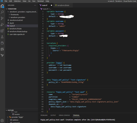 Problem this snippet solves: This ansible playbook and Terraform TF file can be ised to copy the test ASM policy from the dev/preproduction environment to the production environment as this is Continuous integration and continuous delivery. Ansible You use the playbook by replacing the vars with "xxx" with your F5 device values for the connection. Also with the " vars_prompt:" you add policy name during execution as the preprod policy name is "{{ asm_policy }}_preprod" and the prod policy name is "{{ asm_policy }}_prod". For example if we enter "test" during the policy execution the name will be test_prod and test_preprod. If using Ansible Tower with the payed version you can use Jenkins or bamboo to push variables (I still have not tested this). Also there is a task that deletes the old asm policy file saved on the server as I saw that the ansible modules have issues overwriting existing files when doing the export and the task name is "Ansible delete file example" and in the group "internal" I have added the localhost. https://docs.ansible.com/ansible/latest/collections/f5networks/f5_modules/index.html Also after importing the policy file the bug https://support.f5.com/csp/article/K25733314 is hit, so the last 2 tasks deactivate and and activate the production policy. A nice example that I based my own is: https://support.f5.com/csp/article/K42420223 You can also write the connections vars in the hosts file as per K42420223 vars: provider: password: "{{ bigip_password }}" server: "{{ ansible_host }}" user: "{{ bigip_username }}" validate_certs: no server_port: 443 Example hosts: [bigip] f5.com [bigip:vars] bigip_password=xxx bigip_username=xxx ansible_host=xxx The policy is exported in binary format otherwize there is an issue importing it after that "binary: yes". Also when importing the option " force: yes" provides an overwrite if there is a policy with the same name. See the comments for my example about using host groups with this way your dev environment can be on one F5 device and the exported policy from it will be imported on another F5 device that is for production. When not using ''all'' for hosts you need to use set_facts to only be propmpted once for the policy name and then this to be shared between plays. Code : --- - name: Exporting and importing the ASM policy hosts: all connection: local become: yes vars: provider: password: xxx server: xxxx user: xxxx validate_certs: no server_port: 443 vars_prompt: - name: asm_policy prompt: What is the name of the ASM policy? private: no tasks: - name: Ansible delete file example file: path: "/home/niki/asm_policy/{{ asm_policy }}" state: absent when: inventory_hostname in groups['internal'] - name: Export policy in XML format bigip_asm_policy_fetch: name: "{{ asm_policy }}_preprod" file: "{{ asm_policy }}" dest: /home/niki/asm_policy/ binary: yes provider: "{{ provider }}" - name: Override existing ASM policy bigip_asm_policy_import: name: "{{ asm_policy }}_prod" source: "/home/niki/asm_policy/{{ asm_policy }}" force: yes provider: "{{ provider }}" notify: - Save the running configuration to disk - name: Task - deactivate policy bigip_asm_policy_manage: name: "{{ asm_policy }}_prod" state: present provider: "{{ provider }}" active: no - name: Task - activate policy bigip_asm_policy_manage: name: "{{ asm_policy }}_prod" state: present provider: "{{ provider }}" active: yes handlers: - name: Save the running configuration to disk bigip_config: save: yes provider: "{{ provider }}" Tested this on version: 13.1 Edit: -------------- When I made this code there was no official documentation but now I see F5 has provided examples for exporting and importing ASM/AWAF policies and even APM policies: https://clouddocs.f5.com/products/orchestration/ansible/devel/modules/bigip_asm_policy_fetch_module.html https://clouddocs.f5.com/products/orchestration/ansible/devel/modules/bigip_apm_policy_fetch_module.html -------------- Terraform Nowadays Terraform also provides the option to export and import AWAF policies (for APM Ansible is still the only way) as there is an F5 provider for terraform. I used Visual Studio as Visual Studio wil even open for you the teminal, where you can select the folder where the terraform code will be saved after you have added the code run terraform init, terraform plan, terraform apply. VS even has a plugin for writting F5 irules. The terraform data type is not a resource and it is used to get the existing policy data. Data sources allow Terraform to use information defined outside of Terraform, defined by another separate Terraform configuration, or modified by functions. Usefull links for Visual Studio and Terraform: https://registry.terraform.io/providers/F5Networks/bigip/1.16.0/docs/resources/bigip_ltm_datagroup Usefull links for Visual Studio and Terraform: https://registry.terraform.io/providers/F5Networks/bigip/latest/docs/resources/bigip_waf_policy#policy_import_json https://www.youtube.com/watch?v=Z5xG8HLwIh4 The big issue is that Terraform not like Ansible needs you first find the aWAF policy "ID" that is not the name but a random generated identifier and this is no small task. I suggest looking at the link below: https://community.f5.com/t5/technical-articles/manage-f5-big-ip-advanced-waf-policies-with-terraform-part-2/ta-p/300839 Code: You may need to add also this resource below as to save the config and with "depends_on" it wil run after the date group is created. This is like the handler in Ansible that is started after the task is done and also terraform sometimes creates resources at the same time not like Ansible task after task, resource "bigip_command" "save-config" { commands = ["save sys config"] depends_on = [ bigip_waf_policy.test-awaf ] } Tested this on version: 16.11.3KViews1like1CommentBlock IP after a number of ASM Blocks