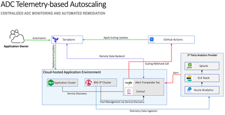 Planning and configuring scaling for a multi cloud-hosted application is not without its challenges and limitations. When I consider the unique approach each public cloud (AWS, Azure, GCP, etc.) has when it comes to scaling of VM instances, applying a consistent scaling policy across the application environment can be difficult. The difficulty level goes up even more when you want to automate your deployment. Aside from the inherent challenge of working with disparate cloud environments, my options with regard to scaling policies and the metrics used to trigger scaling events are limited when attempting to apply consistently across clouds. With the F5 BIG-IP and Telemetry Streaming I have the ability to send a variety of metrics to both CloudWatch and Azure Monitor. From there I could use custom metrics from each respective cloud. But now, I've only succeeded in complicating the solution, (as well as spraying logs all over the place). To address the challenges noted above allow me to introduce... The ADC Telemetry-based Autoscaling (ATA) solution, (see above) illustrates how F5's Automation Toolchain can integrate with third party analytics provider(s) to provide cloud-agnostic centralized application delivery monitoring and autoscaling. The solution utilizes various third-party open-source and proprietary technologies/services and the concept could easily be applied using a variety of vendor offerings. With that said, this solution utilizes the following: F5 BIG-IP(s) providing L4/L7 ADC Services F5 Declarative Onboarding, (DO) and Application Services 3 Extension, (AS3) to deploy to configure BIG-IP application services F5 Telemetry Streaming, (TS) to stream telemetry data to a third party analytics provider Hashicorp Terraform and Consul for infrastructure provisioning, service discovery and event logging GitHub Actions for workflow automation Azure and/or AWS public clouds for application hosting Third-party Analytics Provider, (integrated with BIG-IP(s) via TS) for monitoring and alerting Check it Out Rather than walk you through the entire solution in agonizing detail, how about a movie? Click on the link (image) below for a solution walkthrough. Try it Out Okay, so you watched the video and can't wait to try it in action; I get it. The GitHub solution repository contains guidance as well as the necessary files to deploy the solution. Have fun!614Views1like0CommentsApplication Auto Scaling Through BIG-IP Cloud Edition