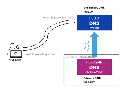 While some organizations prioritize the advantages of a SaaS solution like scalability, others value the benefits of an on-premises solution, such as data control and migration flexibility. This is why having the option to deploy a hybrid model can be beneficial, not just for redundancy, but also for allowing organizations to blend the best of both worlds. Understanding the Architecture’s components F5 BIG-IP DNS - (formerly BIG-IP GTM) is a well-known on-premise solution for delivering high-performance DNS services such as DNSExpress and DNS Caching. It is also recognized for offering intelligent DNS responses that are based on various factors such as LDNS’ Geolocation (GSLB) and health status of applications. F5 Distributed Cloud DNS (F5 XC DNS) – It is F5’s SaaS-based DNS solution which is built on a global data plane, ensuring automatic scalability to meet high-volume demand. Additionally, it also provides GSLB and security such as DNS DoS protection. On the diagram above, BIG-IP DNS will be the hidden primary DNS, acting as the source of truth for DNS records. This setup ensures centralized control and adds an extra layer of security by reducing exposure to potential attacks. F5XC DNS will function as the secondary DNS server, receiving DNS records from BIG-IP via Zone Transfer. It will be responsible for handling public DNS queries and providing domain name resolution services to clients. In the first part of this article, we will show you how to set up and configure BIG-IP DNS as the hidden primary and F5XC DNS as the authoritative secondary DNS server. For some, this setup is sufficient for their requirements, but for others, there may be additional requirements to consider in this hybrid design. In the later part of this article, we will demonstrate how we can address these challenges by leveraging F5's platform features and capabilities! Steps on Implementing F5 Hybrid DNS Solution Step 1: Configure BIG-IP DNS First, we need to configure BIG-IP DNS to be able to perform a zone transfer to F5XC DNS. For more details on the configuration, you can check this link: https://community.f5.com/kb/technicalarticles/configuring-big-ip-for-zone-transfer-and-dnssec/330359 Step 2: Configure F5XC DNS Now after you've configured BIG-IP DNS, we need to configure F5 XC DNS to be a secondary DNS server. For more details, check the steps below: Log into XC Console, select DNS Management option, click Add Zone. In Domain Name field, enter the domain/subdomain. In our example, it will be f5sg.com Zone Type: Secondary DNS Configuration Under the Secondary DNS Configuration field, click Configure On the DNS primary server IP field, enter the public IP address of the Primary DNS. In our example it will be the Public IP of BIG-IP DNS. On TSIG key, enter the name we used to generate TSIG earlier in BIG-IP. In our example, used example. On the TSIG Key algorithm field and select an algorithm from the drop-down. Select hmac-sha256. Click Configure in the TSIG key value in base 64 format section, On the Secret Type field, select Clear Secret and paste the secret in the Secret field. Use the same secret we generated earlier in BIG-IP DNS. Click Apply. You should see the DNS records transferred from BIG-IP DNS to F5XC DNS Step 3: Configure Domain Registrar In this example, the domain registrar I'm using is Namecheap. I'll configure it so that the authoritative name server for the domain f5sg.com is set to F5XC (ns1.f5clouddns.com and ns2.f5clouddns.com). The steps will vary depending on which domain registrar you are using. Refer to the documentation of your registrar. See the screenshots below for how I configured it in Namecheap. F5 XC DNS should now be able to answer DNS queries since it is set to be the authoritative DNS. Now, let's do some testing! On my local machine, I will perform a dig on the f5sg.com domain. See below: You can see that on the dig result, the NS for f5sg.com is set to ns1.f5clouddns.com & ns2.f5clouddns.com! I can also resolve sales.f5sg.com! We have successfully implemented BIG-IP as Hidden Primary and F5XC as Authoritative Secondary DNS! Challenges and Considerations Now let's discuss the additional requirements or challenges that we might encounter with this hybrid setup solution: Security: We need to comply with security compliance. Nowadays, there are laws requiring the implementation of DNSSEC (DNS Security Extensions). We need to consider this in the design and implement it without adding complexity. Resiliency: Although F5XC DNS Infrastructure is built to be resilient, we still want a backup plan to failover to the BIG-IP Primary DNS in case of unforeseen events. This process will be manual, as we need to change the NS records at the registrar to promote the hidden BIG-IP Primary DNS as the authoritative NS for the domain once F5XC is unavailable. Synchronization: BIG-IP will not be able to synchronize the GSLB functionality with F5XC because Wide-IP records are non-standard and cannot be transferred as part of zone transfers. Solution to Challenges Now comes the fun part: tackling the challenges we’ve laid out! Fortunately, F5 Distributed Cloud is an API-first platform that enables us to automate configuration. At the same time, we have the power of the BIG-IP platform, where you can run custom scripts that will enable us to integrate it with F5XC through API. Solution to Challenge #1: This is easy. DNSSEC records like RRSIG, DNSKEY, DS, NSEC, and NSEC3 are standardized and can be synchronized as part of a zone transfer. Since BIG-IP DNS is our primary DNS and supports DNSSEC, we can enable it. The records will synchronize to F5XC DNS and still respond with signed records, maintaining the integrity and security of our DNS infrastructure. How do you enable it? Check the last part of the technical article below: https://community.f5.com/kb/technicalarticles/configuring-big-ip-for-zone-transfer-and-dnssec/330359 Solution to Challenge #2: We need to automate failover!