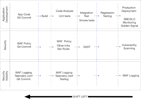 5 Minute Read Applications evolve rapidly whether your organization runs off-the-shelf applications or builds its own applications and frameworks. Increasingly, workloads are developed in a matter of hours, packaged, instantiated and torn down in timespans measured in minutes. This is the nature of continuous deployment pipelines. Securing applications and workloads that are highly dynamic possibly living across different colocation facilities (Colos) and cloud infrastructures (public and private), can only be achieved following continuous integration and continuous deployment (CI/CD) methodologies. In practice, this has resulted in integrating security in the software development and deployment lifecycles with the automation of: · Code scanning when checked in to software versioning management tools (Git repository) using static application security testing (SAST), · Integrating web application firewall (WAF) in the CI/CD pipeline as can be seen with BIG-IP Advanced WAF or NGINX App Protect and Kubernetes · Verifying artifacts used for application instantiation such as packages and containers during creation, before they are stored to ensure that they are free of malware · Scanning applications/workloads at runtime as part of the pipeline before deployment in production leveraging dynamic application security testing (DAST) tools · Securing runtime environments enforcing admission control, use of least-privilege during spin-up, and implementing monitoring · Building in compliance at every stage of the development and deployment process as needed (HIPAA, PCI etc.) Building automated and orchestrated · Monitoring Kubernetes clusters and other cloud and physical infrastructure where workloads run, however ephemerally, tracking things like container health, container orchestration and ownership across the cluster · Monitoring workloads and cloud services following site reliability engineering (SRE) guidelines – following the “Golden Signals” (Source: SRE Book) · Performing regular vulnerability scanning of applications in production Building security in the early stages of the software development lifecycle is part of a “shift-left” strategy, and is discussed here or here. In order to support specific service level objectives (SLO), monitoring at the application and infrastructure level is built into the infrastructure from the perspective of latency, traffic, errors and saturation. More information on adopting SRE with F5 can be found here. What about security visibility? The fundamental need to have a holistic view of the application and its components is essential to be able to mitigate threats. You need to visualize your applications and possible threats in order to assess risk, identify threat vectors before attackers do, and possibly investigate in the event of an issue. In a previous article, we focused on the posture assessment (static view) and monitoring (dynamic view) axis as fundamentals of security visibility. Implementing this visibility entails building and deploying security and security visibility within the pipeline along-side the application, workload or infrastructure. The above figure shows the insertion of WAF policy and logging the software building pipeline. In a shift-left effort the logging, telemetry and security policy configuration is integrated alongside the application’s SDLC. The intent is to leverage the same pipeline infrastructure and have the security and visibility aspects integrated in the project with the workload code. WAF only provides one aspect of the application security suite and is the focus of this exercise. Other infrastructure-centric security configurations, such as mTLS use within a Kubernetes Service Mesh or authentication/authorization framework configurations, can also be inserted in the pipeline. In order to simplify testing and deployment, the security infrastructure needs to be defined as code for consistent deployment for testing and production environments. Within an infrastructure-as-code and security-as-code framework, this article is meant to outline the need for visibility-as-code, and more precisely security-visibility-as-code. All F5 WAF products and their associated logging, monitoring and telemetry capabilities are easily automated and defined as-code. They can be inserted anywhere programmatically in all environment for testing as well as production.949Views0likes0CommentsAdvanced API security for Kubernetes containers running in AWS - NGINX App Protect per-service deployment through a CI/CD pipeline