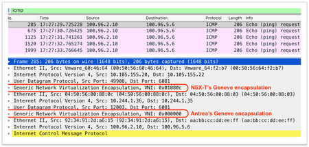 Introduction BIG-IP in Tanzu Kubernetes Grid provides a Ingress solution which is implemented with a single tier of Load Balancing. Typically Ingress requirea an in-cluster Ingress Controller and an external Load Balancer. By using BIG-IP, Ingress services get greatly simplified, while improving the perfomance by removing one hop and at the same time exposing all the BIG-IP's advanced load balancing functionalities and security modules. Tanzu Kubernetes Grid is a Kubernetes distribution supported by VMware that comes with the choice of two CNIs: Antrea - Geneve overlay based. Calico - BGP based, no overlay networking. When using Antrea in NSX-T environments Antrea uses it's own Geneve overlay on top of NSX-T's own Geneve overlay networking. This makes the communications in the TKG cluster to have the overhead of two encapsulations as it can be seen in the next wireshark capture. Modern NICs are able to off-load the CPUs from the task of handling Geneve's encapsulation but these are not able to cope with double-encapsulation as it is the case when using Antrea+NSX-T. In this blog we will describe how to setup BIG-IP with TKG's Calico CNI which doesn't have such overhead. The article is divided in the following sections: Deploying a TKG cluster with built-in Calico Deploying BIG-IP in TKG with NSX-T Configuring BIG-IP and TKG to peer with Calico (BGP) Configuring BIG-IP to handle Kubernetes workloads Verifying the resulting configuration Alternative topologies and multi-tenancy considerations Closing notes All the configuration files referenced in this blog can be found in the repository https://github.com/f5devcentral/f5-bd-tanzu-tkg-bigip Deploying a TKG cluster with built-in Calico Deploying a TKG cluster is as simple as running kubectl with a definition like the following one: Note that the only thing required to choose between using Antrea or Calico is to specify the cni: name: field. It is perfectly fine running clusters with different CNIs in the same environment. At time of this writing (H1 2021) Calico v3.11 is the version included in Kubernetes v1.18. As you can see from the definition above we will be creating a small cluster for testing purposes. This can be scaled-up/down later on as desired by re-applying an updated TKG cluster definition. Deploying BIG-IP in TKG with NSX-T When a TKG cluster is deployed in NSX-T the Tanzu Kubernetes Grid Service automatically creates the necessary networking configuration. This includes amongst other: creating a T1 Gateway (also known as DLR) named vnet-domain-c8:<uuid>-<namespace>-<name>-vnet-rtr and a subnet named vnet-domain-c8:<uuid>-<namespace>-<name>-vnet-0 where Kubernetes nodes are attached. This is shown in the next screenshot where we can see that the subnet is using the range 10.244.1.113/28. The BIG-IPs will be part of this network as if it was another Kubernetes node. Additionally, we will create another segment named VIP in the same T1 DLR to keep all TKG resources under the same network leaf (this can be customized). As the name suggests this VIP segment is used for exposing the Ingress services implemented in the BIG-IPs. This is shown in the next Node's view figure. The BIG-IPs will additionally have the regular management and HA segments which are not shown for clarity. Following regular BIG-IP rules, these segments should be outside the data plane path and the HA segment doesn't need to be connected to any T1. The IP addresses used by the BIG-IP's in the Node's segments 10.244.1.{124,125,126} will need to be allocated in NSX-T so when scaling the TKG cluster they are not used by the Kubernetes nodes. This is done in the next figure. This is done by first login in the NSX-T manager > Networking > IP Address Pools where we will find the subnet allocated to our tkg2-tkg2 cluster. In this screen we can obtain the API path to operate with it. In the figure we show the use of POSTMAN to make the IP address allocation with an API request. More precisely a PUT policy/api/v1/<API path>/ip-allocations/<name of allocation> request indicating in the body the desired IP to allocate. In this link at code.vmware.com you can find the full details of this API call. The names of the IP allocations are not relevant. In this case the names I chose are: bigip-floating, bigip1 and bigip2 respectively. Configuring BIG-IP and TKG to peer with Calico (BGP) In the BIG-IP we will configure the VLANs and Self-IPs normally, the only additional consideration is that since we are going to use Calico we have to allow BGP communication (TCP port 179) on the TKG's self-IPs port lock down settings (non-floating only) as shown next. Next we will enable BGP in the Networking -> Route Domains -> 0 (existing) as shown next. At this point we can configure BGP using the imish command line that brings us access to dynamic routing protocols configuration: In the figure above it is shown the configuration for BIG-IP1. Only the router-id needs to be changed to apply it in BIG-IP2. To finish the Calico configuration we have to instruct the TKG cluster to peer with the BIG-IPs, this is done with the following Kubernetes resources: kubectl apply -f - <<EOF kind: BGPPeer apiVersion: crd.projectcalico.org/v1 metadata: name: bigip1 spec: peerIP: 10.244.1.125 asNumber: 64512 --- kind: BGPPeer apiVersion: crd.projectcalico.org/v1 metadata: name: bigip2 spec: peerIP: 10.244.1.126 asNumber: 64512 EOF As you might have noticed we are not using BGP passwords this is because Calico v3.17+ is needed for this feature. In any case the Node's network is protected by default by TKG's firewall rules in the T1 Gateway. Finally we will verify that all the routes are advertised as expected: The above verification has to be done in both BIG-IPs. Note from the above verification that it is expected to see for SNAT's range the nexthop 0.0.0.0. In the verification we can see a /26 prefix for each Node (these prefixes are created by Calico on demand when more PODs are created) and an /24 prefi