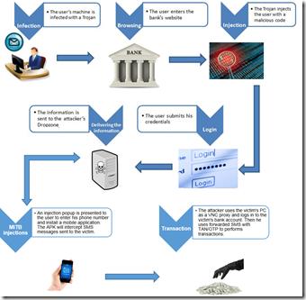 Co-Authored with Itzik Chimino. --- iBanking is malware that runs on Android mobile devices. It is delivered via a new variant of the computer banking Trojan Qadars, which deceives users into downloading iBanking malware on to their android device. It can be used with any malware used to inject code into a web app. The malware enables cybercriminals to intercept SMS and bypass the two-factor authentication methods used by several banks throughout the world to authorize mobile banking operations. iBanking malware acts as a spy that can also of grab contact lists, steal bank account details, forward incoming voice calls, and record the victim’s voice, which enables it to overcome voice recognition security features that financial institutions are beginning to implement. Cyber criminals ultimately utilize iBanking malware to transparently complete money transfers on behalf of the infected targeted users. How the attack works Focusing specifically on the new variant of iBanking malware that targets Facebook users, the attack begins by infecting users’ devices with the Qadars banking Trojan via a drive-by download from an unsuspecting website. Qadars then intercepts the webpage and uses JavaScript to inject code into the webpage—in this case, a Facebook page—that presents users with a fake verification pop-up page upon initial login. This page requests the victim’s phone number and Android device confirmation. The victim then receives an SMS message on the verified device, which directs him to a page with instructions to download added security. Once the victim installs the iBanking malware, it cannot be removed if it was given admin rights during the install process. Remote control of the infected device Once the malware is activated by the user on his smartphone, the attacker gains administrator permissions on his device. The attacker can now control a vast amount of functions such as: 1. Allows applications to change network connectivity state. 2. Allows an application to send/read SMS messages. 3. Allows an application to automatically start when the system boots. 4. Allows an application read-only access to phone state. 5. Allows an application to access approximate location derived from network location sources such as WiFi and cell antennas. 6. Allows an application to initiate a phone call without going through the Dialer user interface for the user to confirm the call being placed. 7. Allows an application to open network sockets. 8. Allows an application to write to external storage such as modify/delete SD card contents. 9. Allows an application to read the user's contacts data. 10. Allows an application to record audio such as phone calls and voice messages. Click here to read the full technical iBanking Malware Analysis Report by F5 SOC. To read more about F5 Global Security Operation Centers click here.571Views0likes3CommentsTinba Malware – New, Improved, Persistent