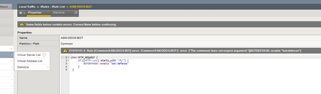 When I attach DOS and BOT profiles with local traffic policy or iRule I always need a default BOT and DOS profile even when I have a default rule that catches all the traffic. That is one thing but the strangest thing is when I decide to attach a Bot profile with iRule it does not work but the Local traffic policies allow this. I will need to test this but is really strange. This is the first time something is only possible with Local Traffic Policies but I will have to test if it works 🙂Solved1.4KViews0likes2CommentsPreventing DDoS attacks on SMS URL