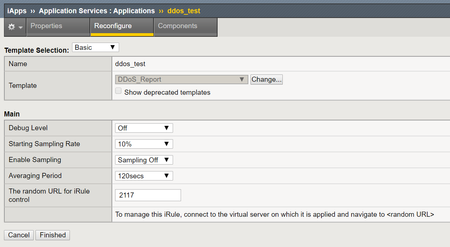Problem this snippet solves: When under DDoS, it can be difficult to set the ASM DoS profile correctly and to work out which URL, geographic areas etc are in use. With this iApp and iRule you can assign an iRule to create a report and see the state easily and in an exportable manner. A control menu is available for tuning sampling on and off, sampling rate is varied according to CPU rate so this should be safe to use when under attack. The report shows RPS based on IP, URL, Country and User Agent and shows both tables and graphs. Tables allow searching, paging and limiting number of entries. Graphs can be exported in different formats eg PNG, JPG, SVG, PDF etc. How to use this snippet: This iRule and iApp will enable an iRule to be added to the virtual server and provide a report directly by navigating to the virtual server and the random URL. The Virtual Server requires an http profile to be assigned. Install the iApp and run it to set variables and create the iRule, or add the iRule and set the variables. Navigate to the virtual server on which it is applied and go to the URL as specified in the random variable eg https://1.2.3.4/6123. This will show the menu to turn sampling on or off and view the report. Code : 90966 Tested this on version: 11.6604Views0likes0Comments