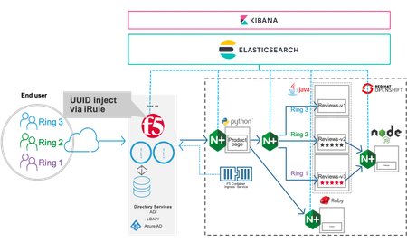 This article is a joint collaboration between Eric Ji and JC Kwon. Getting started In the previous article, we explained SRE (Site Reliability Engineering) and how F5 helps SRE deploy and secure modern applications. We already talked observability is essential for SRE to implement SLOs. Meanwhile, we have a wide range of monitoring tools and analytic applications, each assigned to special devices or running only for certain applications. In this article, we will explore one of the most commonly utilized logging tools, or the ELK stack. The ELK stack is a collection of three open-source projects, namely Elasticsearch, Logstash, and Kibana. It provides IT project stakeholders the capabilities of multi-system and multi-application log aggregation and analysis. Besides, the ELK stack provides data visualization at stakeholders' fingertips, which is essential for security analytics, system monitoring, and troubleshooting. A brief description of the three projects: Elasticsearch is an open-source, full-text analysis, and search engine. Logstash is a log aggregator that executes transformations on data derived from various input sources, before transferring it to output destinations. Kibana provides data analysis and visualization capabilities for end-users, complementary to Elasticsearch. In this article, the ELK is utilized to analyze and visualize application performance through a centralized dashboard. A dashboard enables end-users to easily correlate North-South traffic with East-West traffic, for end-to-end performance visibility. Overview This use case is built on top of targeted canary deployment. As shown in the diagram below, we are taking advantage of the iRule on BIG-IP, generated a UUID is and inserted it into the HTTP header for every HTTP request packet arriving at BIG-IP. All traffic access logs will contain the UUIDs when they are sent to the ELK server, for validation of information, like user location, the response time by user location, response time of BIG-IP and NGINX plus, etc. Setup and Configuration 1. Create HSL pool, iRule on BIG-IP First, we created a High-Speed Logging (HSL) pool on BIG-IP, to be used by the ELK Stack. The HSL pool is assigned to the sample application. This pool member will be used by iRule to send access logs from BIG-IP to the ELK server. The ELK server is listening for incoming log analysis requests Below is the iRule that we created. when CLIENT_ACCEPTED { set timestamp [clock format [clock seconds] -format "%d/%h/%y:%T %Z" ] } when HTTP_REQUEST { # UUID injection if { [HTTP::cookie x-request-id] == "" } { append s [clock seconds] [IP::local_addr] [IP::client_addr] [expr { int(100000000 * rand()) }] [clock clicks] set s [md5 $s] binary scan $s c* s lset s 8 [expr {([lindex $s 8] & 0x7F) | 0x40}] lset s 6 [expr {([lindex $s 6] & 0x0F) | 0x40}] set s [binary format c* $s] binary scan $s H* s set myuuid $s unset s set inject_uuid_cookie 1 } else { set myuuid [HTTP::cookie x-request-id] set inject_uuid_cookie 0 } set xff_ip "[expr int(rand()*100)].[expr int(rand()*100)].[expr int(rand()*100)].[expr int(rand()*100)]" set hsl [HSL::open -proto UDP -pool pool_elk] set http_request "\"[HTTP::method] [HTTP::uri] HTTP/[HTTP::version]\"" set http_request_time [clock clicks -milliseconds] set http_user_agent "\"[HTTP::header User-Agent]]\"" set http_host [HTTP::host] set http_username [HTTP::username] set client_ip [IP::remote_addr] set client_port [TCP::remote_port] set http_request_uri [HTTP::uri] set http_method [HTTP::method] set referer "\"[HTTP::header value referer]\"" if { [HTTP::uri] contains "test" } { HTTP::header insert "x-request-id" "test-$myuuid" } else { HTTP::header insert "x-request-id" $myuuid } HTTP::header insert "X-Forwarded-For" $xff_ip } when HTTP_RESPONSE { set syslogtime [clock format [clock seconds] -format "%h %e %H:%M:%S"] set response_time [expr {double([clock clicks -milliseconds] - $http_request_time)/1000}] set virtual [virtual] set content_length 0 if { [HTTP::header exists "Content-Length"] } { set content_length \"[HTTP::header "Content-Length"]\" } else { set content_length \"-\" } set lb_server "[LB::server addr]:[LB::server port]" if { [string compare "$lb_server" ""] == 0 } { set lb_server "" } set status_code [HTTP::status] set content_type \"[HTTP::header "Content-type"]\" # construct log for elk, local6.info <182> set log_msg "<182>$syslogtime f5adc tmos: " #set log_msg "" append log_msg "time=\[$timestamp\] " append log_msg "client_ip=$client_ip " append log_msg "virtual=$virtual " append log_msg "client_port=$client_port " append log_msg "xff_ip=$xff_ip " append log_msg "lb_server=$lb_server " append log_msg "http_host=$http_host " append log_msg "http_method=$http_method " append log_msg "http_request_uri=$http_request_uri " append log_msg "status_code=$status_code " append log_msg "content_type=$content_type " append log_msg "content_length=$content_length " append log_msg "response_time=$response_time " append log_msg "referer=$referer " append log_msg "http_user_agent=$http_user_agent " append log_msg "x-request-id=$myuuid " if { $inject_uuid_cookie == 1} { HTTP::cookie insert name x-request-id value $myuuid path "/" set inject_uuid_cookie 0 } # log local2. sending log to elk via log publisher #log local2. $log_msg HSL::send $hsl $log_msg } Next, we added a new VIP for the HSL pool which was created earlier, and applied iRule for this VIP. Then all access logs containing the respective UUID for the HTTP datagram will be sent to the ELK server. Now, the ELK server is ready for the analysis of the BIG-IP access logs. 2. Configure NGINX plus Logging We configure logging for each NGINX plus deployed inside the OpenShift cluster through the respective configmap objects. Here is one example: 3. Customize Kibana Dashboard With all configurations in place, log information will be processed by the ELK server. We will be able to customize a dashboard containing useful, visualized data, like user location, response tim