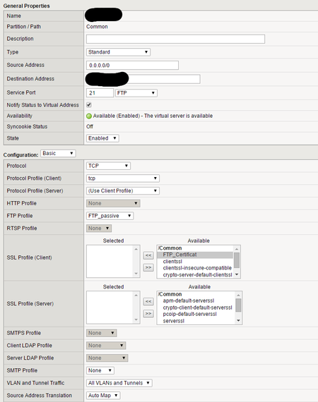 I have been asked to provide a VS for explicit FTP/S. We have recently upgraded to v13 (we were pretty far behind) and I have noticed the FTP profile has an option for 'Allow FTPS'. Does anyone have any working configurations for Explicit FTP/S using this profile or working configurations for E FTP/S in general? Thank you...213Views0likes0CommentsProblem FTPS passive
