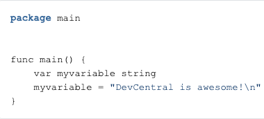Related Articles Go in Plain English: Creating your First WebServer Quick Intro In this article I'm going to start with Strings to give you some hands-on exposure. You need to install Go first and ideally a code editor like VS Code as shown in Golang in Plain English: Settings things up and Hello World! The way I'll go through variables here is the way I taught myself Go so it shouldn't be hard. Just repeat what I do here and you should be fine. Here's what I'll go through: Declaring a variable in Go (you'll even understand the mysterious :=) Using just parts of Strings with Slicing Iterating through String Characters Printing the Length of a String How do we print double quotes inside of print statement? Declaring a variable in Go This is how we declare a variable in Go: Go makes it easier by letting you both declare and set the variable at the same time by adding a colon before the equals sign like this: However, if I try to run it Go won't let me because it requires that all declared variables must be used: So if we add a print statement it will work: Note that %s means we're printing a string. If it was an integer, for example, you'd use %d instead. It now works: Using just parts of the string with Slicing Let's say you just want to print DevCentral (character 0 to 10) but you don't want to touch the variable. This is what you do: Here's the output: You could've omitted the 0 leaving just my variable[:10] and Go would understand that starting position is 0 anyway. We can also do the other way round if we want to print just awesome (character 14 until the end). This time I'm just going to omit the last position as Go understands it's up to the end: Here's the output: Iterating through string characters The other MUST know is how to go through each character in a for loop using range: The first thing to understand here is that our for loop requires 2 things: the index we're at (0,1,2,3, etc) and the character. So first iteration: i = 0, c = 'D', 2nd iteration: i = 1, c = 'e', and so on. Let's print this out: Let's say you don't care about the index. In that case, Go has something very handy for this. Just use the _ character and Go will ignore it: Here we go: If it's just the index, you don't need the _ because Go already understands that you just want to print the index as it's the first entry (from i,c): And here's the output again: Printing the Length of a String Another useful thing is to learn how to print the length of a string which is not very different from other programming languages: Here's the output: How do we print double quotes inside of print statement? Just put your string between back quotes like this: Let's run it: Oops! It also printed our new line character. Let's fix it by taking it out of our back quotes and merging it between double quotes like this: Let's run it one more time: Fixed!485Views0likes0Comments