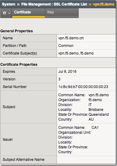 Overview I’ve been using On-Demand VPN for a number of years as it’s a secure and easy way to access applications while on the road with the added benefit of conserving device battery life when idle. On-Demand VPN is a simple concept. You define a domain or list of domains in the “Connect On Demand” settings. The Edge Client looks at the DNS requests made by the App (e.g Safari) and when the FQDN matches one of the defined domains, it fires up the VPN in the background and authenticates using a X.509 Client Certificate. On-Demand VPN requires the installation of a X.509 Client Certificate on the iOS device, which can be provisioned using a number of tools. This article will not go into these tools, but I will give you a few ideas how to get the X.509 certificate on the device. Some of the methods I have used in the past: Mobile Device Management (MDM) configured to use Simple Certificate Enrollment Protocol (SCEP) iPhone Configuration Utility (iPCU) Email the .p12 or .pfx file When using X.509 Client Certificates, I highly recommend adding the User Principal Name (UPN), e.g. test.user@f5.demo to the Subject Alternative Name (SAN) extension. This allows APM to identify the user of the device and can be used for: Single Sign On (SSO) using Kerberos or SAML Active Directory / LDAP queries to determine group membership etc. Logging and Reporting In a large scale environment I recommend using MDM, SCEP, Certificate Authority (CA) and an OCSP Responder to verify the revocation status. This article will cover how to configure the APM to authenticate the user and establish the VPN tunnel automatically using the On-Demand feature. My Example In my working example, I have a pre-configured CA called “CA1” joined to the domain “f5.demo”. The iOS device has the client certificate (Test User) installed with a UPN “test.user@f5.demo” in the SAN extension. This certificate has been issued by CA1 and is trusted by the iOS device. I have also installed the F5 Edge Client via the App Store. Step 1 – Import the SSL Certificates 1.1 Import the SSL Certificate/Key that will be used for SSL VPN connection System >> File Management >> SSL Certificate List Please follow SOL14620: Managing SSL certificates for BIG-IP systems My configuration looks like this: 1.2 Import Certificate Authority Certificate that is signing the Client Certificates Repeat Step 1.1 but this time you need to import the CA Certificate (without the Key) that is signing the User Certificates. It should look something similar to this: Step 2 – Create a Client SSL Profile Local Traffic >> Profiles >> SSL >> Client >> “Create” Supply the following: Name: vpn.f5.demo_ssl_profile Parent Profile: clientssl Certificate: vpn.f5.demo Key: vpn.f5.demo Trusted Certificate Authorities: CA1 Select “Finished” to save. Step 3 – Create the APM Configuration In this example I will use an On-Demand Certificate Authentication to validate the client certificate and some TCL to extract the UPN from the SAN extension. After successful authentication, a VPN tunnel is then assigned and established. You can expand on this configuration by adding an OCSP Responder to check if the certificate has been revoked. Simply modify the Names, IP addresses, DNS etc. to suit your environment. 3.1 Create a Webtop Access Policy >> Webtop >> Webtop List >> “Create” Supply the following: Name: vpn_webtop Type: Full Select “Finished” to save. 3.2 Create a Connectivity Profile Access Policy >> Secure Connectivity >> Connectivity Profile >> “Create” Supply the following: Name: vpn_cp Parent Profile: connectivity Select “Finished” to save. 3.3 Create a Lease Pool Access Policy >> Network Access >> Lease Pools >> IPv4 Lease Pools >> “Create” Supply the following: Name: vpn_lease_pool_10.123.123.0 Start IP Adddress: 10.123.123.1 End IP Address: 10.123.123.254 Select “Add” Select “Finished” to save. 3.4 Create a Network Access Access Policy >> Network Access >> Network Access List >> “Create” Supply the following: Name: vpn_na Caption: SSL VPN Select “Update” to save. Under “Network Settings”. Supply the following: IPV4 Lease Pool: vpn_lease_pool_10.123.123.0 Traffic Options: Use split tunneling for traffic (select appropriate option for your environment) IP Address: 10.0.0.0 Mask: 255.0.0.0 Select “Add” Select “Update” to save. Under “DNS/Hosts” Supply the following: IPV4 Primary Name Server: 10.10.20.1 DNS Default Domain Suffix: f5.demo Select “Update” to save. 3.5 Create an Access Policy We can now bring it all together using the Visual Policy Editor (VPE). Access Policy >> Access Profiles >> Access Profile List >> “Create” Supply the following: Name: vpn.f5.demo_ap Languages: English (en) Use the default settings for all other settings. Select “Finished” to save. 3.6 Edit the Access Policy in the VPE Access Policy >> Access Profiles >> Access Profile List >> “Edit” (vpn.f5.demo_ap) On the fallback branch after the Start object, add an On-Demand Cert Auth object. Leave the defaults and “Save”. On the Successful branch after the On-Demand Cert Auth object, add a Variable Assign object. Supply the following: Name: Extract UPN Add the following variable assignments by selecting “Add new entry” >> “change”. Variable Assignment 1: Custom Variable (Unsecure): session.logon.last.domain Custom Expression: set upn [mcget {session.logon.last.upn}]; if {[string first "@" $upn] >= 0} { return [string range $upn [expr { [string first "@" $upn] + 1 } ] end ]; } else { return ""; } Variable Assignment 2: Custom Variable (Unsecure): session.logon.last.username Custom Expression: set upn [mcget {session.logon.last.upn}]; if {[string first "@" $upn] >= 0} { return [string range $upn 0 [expr { [string first "@" $upn] - 1 } ] ]; } else { return $upn; } Variable Assignment 3: Custom Variable (Unsecure): session.logon.last.upn Custom Expression: set e_fields [split [mcget {session.ssl.cert.x509e