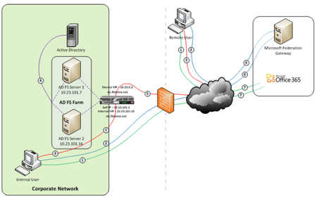 このパートではADC(Application Delivery Controller)について説明します。先のパート1ではBig-IPの優れた負荷分散機能を使って社内ADFSファームと境界部ADFSProxyファームの両方を展開することにより、ハイアベイラビリティと拡張性を確保しました。しかしBig-IPはこれ以外にもさまざまな方法でアプリケーションデリバリに貢献します。このパート2ではADFSProxyレイヤの代わりとしてAccess Policy Manager(APM) モジュールを使用します。この手法の事例として、最も一般的な使用ケースであるウェブベースのMicrosoft Office 365(英語)アプリケーションとフェデレーション化を行い、このアプリケーションへのシングルサインオンを可能にするためADFSを展開する場合を考えてみます。 このADFSProxyサーバの目的は、インターネットからアクセスできないADFSサーバへの要求を受領し、それを転送することです。パート1で述べたように、ハイアベイラビリティを実現するには少なくとも2台のプロキシサーバに加えて負荷分散ソリューション(もちろんF5 Big-IP)が必要です。F5のアプライアンスにAPMを実装することにより、これらのサーバが不要になるだけでなく、境界部で事前承認を行い、またクライアントサイドでのチェックなど高度な機能(アンチウィルスのバリデーション、ファイアウォールの検証など)の導入によりおそらくよりセキュリティを強化した展開が実現します。 前提事項および製品展開のための資料 - この展開シナリオでは、読者にBIG-IP LTMモジュールの管理に関する一般的な知識と、APMモジュールに関する基本的な理解があることを想定しています。詳細やガイドが必要な場合はF5のサポートサイトASKF5(英語)を参照してください。下図は社内外のクライアントがADFS経由でOffice 365にアクセスする場合の典型的なプロセスフローを示しています(受動的制御、「ウェブベース」のアクセス)。 両方のクライアントがOffice 365リソースへのアクセスを試みます。 両方のクライアントがそのリソースのフェデレーションサービスにリダイレクトされます(注:このステップはMicrosoft Outlookなどのアクティブクライアントの場合には省略されることがあります)。 両方のクライアントは社内のフェデレーションサービスにリダイレクトされます。 ADFSサーバがアクティブディレクトリに対してクライアントを認証します。 ・社内クライアントはADFSサーバファームのメンバーに直接負荷分散されます。 ・社外のクライアントは: - APMのカスタマイズ可能なサインオンページ経由でActive Directoryに対し事前認証されます。 - 認証されたユーザはADFSサーバファームのメンバーにリダイレクトされます。 ADFSサーバは、署名済みのセキュリティトークンとリソースパートナーへのクレームセットを含む認証クッキーをクライアントに提供します。 クライアントはMicrosoft Federation Gatewayに接続し、そこでトークンとクレームが検証されます。Microsoft Federation Gatewayが新しいセキュリティトークンをクライアントに提供します。 クライアントは新しい認証クッキーをそれに含まれるセキュリティトークンと共にOffice 365リソースに提示してアクセスを行います。 仮想サーバとプールメンバー - (社内と社外の)すべてのユーザは同じBig-IPを経由してADFSサーバファームにアクセスしますが、その要件とそれ以降のユーザエクスペリエンスはそれぞれ異なります。社内の認証されたユーザはADFSサーバファームに直接負荷分散されますが、社外ユーザは(APM経由で事前承認を得た後にADFSファームのメンバーへのアクセスを許可されます。このため2つの仮想サーバが使用され、その1つは社内アクセスに、もう1つは社外からのアクセス専用となります。社内と社外の仮想サーバには、いずれも同じ社内ADFSサーバファームプールが関連付けられます。 社内の仮想サーバ - 社内ADFSファームの仮想サーバ設定については本シリーズのパート1をご覧ください。 社外の仮想サーバ - 社外の仮想サーバのコンフィグレーション設定は、本シリーズのパート1に記載した仮想サーバの場合と同様です。これに加え、APM Access Profile(下記設定のハイライト部分を参照)が仮想サーバに割り当てられます。 APMのコンフィグレーション設定 - 社外ユーザが社内のADFSファームへのアクセスを許可されるのに先立ち、以下のAccess Policy Manager(APM)コンフィグレーションが作成され、社外向けの仮想サーバに関連付けられます。先に述べたように、APMモジュールは事前承認に加え、クライアントサイドでのチェックやシングルサインオン(SSO)など高度な機能も提供します。もちろんこれらはさまざまな機能のほんの一部に過ぎません。ASKF5(英語)にはクライアントサイドのチェックに関する詳細が記載されています。 AAAサーバ - ADFSアクセスプロファイルはActive Directory AAAサーバを使用します。 アクセスポリシー - ADFSアクセスプロファイルには以下のアクセスポリシーが関連付けられています。 ログオンページの表示に先立ち、クライ