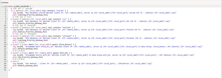 I have multiple links, namely China Mobile, China Unicom and China Telecom. Currently, I use the traditional outbound virtual server to go out through irules. According to the internal client request target address, the corresponding link is selected for the specific ISP to share. I have a requirement. Can it be realized according to a certain pool or member (specifically referring to the sharing limit threshold of a certain ISP link bandwidth utilization rate, such as China Telecom 100Mbps. When the threshold is exceeded, the new session traffic will no longer share the telecom member or according to the percentage utilization rate)? The current version is 17. I have tried to use Acceleration ›› Bandwidth Controllers : Policies and then call the location Network ›› Packet Filters : Rules ›› New Packet Filter Rule. But this is global and has a certain impact on other parts. It requires limited policy adjustment. Is there a better way, including whether the irules method can use the BWC::measure measurement method to achieve it? If you can write it, please leave a message! Thank you! Any message is very grateful! ! !115Views0likes3Comments
