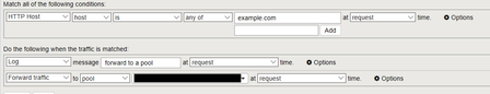 Hello Everyone, I'm currently using irule to publish application (filtering by URL). At the end of the irule I have a redirect by default. when HTTP_REQUEST {set path [string tolower [HTTP::path]] switch -glob [string tolower [HTTP::host]] { "example.com" { pool example-com-pool } default { HTTP::respond 301 Location "https://[HTTP::host][HTTP::uri]" } } I'm having an issue migrating from irule to ltm policies. I have this rule. My policy rule is matching (Thanks to the log action). But the forward traffic action is not working. I'm redirected to https by the default condition of the irule. So it looks like the irule is overwroting what my policy is doing. Anyone encountered this issue ? Thanks!Solved711Views0likes3Comments