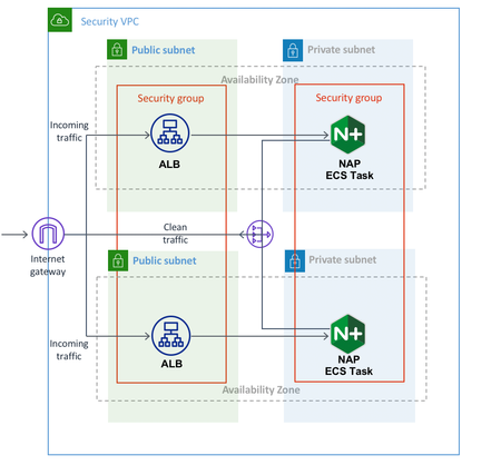 Introduction Advanced teams which develop serverless applications usually prefer to have entire infrastructure running serverless including security tools like WAF. F5 can definitely accommodate such need with Essential App Protect which runs as SaaS. It doesn't require any infrastructure management, easy to setup as 1-2-3 however not as flexible as managed WAF can be. Serverful NGINX App Protect gives full flexibility in data plane and WAF policy configuration but requires team, expertise and time to manage underlying servers. What if to combine both of these approaches by running full featured NGINX App Protect on top of public cloud's serverless compute engine (e.g. AWS Fargate, GCP Cloud Run, ...) which require zero infrastructure maintenance to run workloads. Note: If you are not familiar with serverless compute platforms take a look to official docs: AWS, GCP, Azure. Long story short they are managed compute engines which take container workload declaration (what?) as input and then automatically make sure that workload runs exactly as specified in declaration (how?). Compute resources, networking, security, everything... Literally zero infrastructure maintenance. Solution Requirements The idea sounds pretty attractive so let's define requirements and try to make it happen. Fully featured WAF runs serverless (zero infrastructure maintenance, low cost due to per used CPU/MEM billing) As easy to setup as SaaS WAF Deployment is fully automated and repeatable All configuration stored in git (version control, easy roll back, developers friendly) Implementation Clear requirements are half of success. Implementation is another half. Last two solution requirements lead to use of CICD platform (like Gitlab). Such platform allows to automate anything using CICD pipelines. Fortunately there is no need to develop a pipeline from scratch. There is a template repo which can be reused to deploy your own serverless WAF. The plan as simple as: Clone template repo to a new one Supply cloud service account credentials and NGINX App Protect license keys to the new git repo Let pipeline to do the rest for you Enjoy serverless WAF Template repo contains all configuration files and CICD pipeline definition to automate all deployment and operation steps. Pipeline designed to use Gitlab as CICD platform, AWS as public cloud and consists of three stages: Terraform: Creates AWS resources (VPC, subnets, security groups, cluster, etc...) Build: Builds NGINX App Protect docker image and pushes it to container registry (AWS ECR) Deploy: Generates NGINX App Protect configuration and launches it in AWS Elastic Container Service (AWS ECS aka AWS Fargate) Terraform Stage Terraform is a popular configuration management system. It takes infrastructure declaration as input and builds it at location of your choice either cloud or on-premises (Official docs). This particular stage uses terraform to create "Security VPC" and its components as shown below: ECS cluster runs NGINX App Protect containers to process a traffic. ECR stores and supplies container images to ECS. ALB accepts traffic from clients and distributes it between WAF containers. Build Stage Build stage builds NGINX App Protect container image with default configuration and pushes it to ECR. In order to get access to NGINX App Protect repositories certificate and key should be supplied to the Gitlab repo as base64 encoded environment variables. Deploy Stage This stage generates configuration for NGINX App Protect, deploys containers to the ECS and publishes them through ALB. Therefore pipeline completely automates WAF deployment. All day to day operations are performed via code commits. Want to change NGINX configuration - commit changes to nginx.conf. Want to change WAF policy - commit changes to WAF policy file. Want to roll back configuration - refer previous task definition. Example After initial commit CICD pipeline creates AWS VPC and ECS cluster with few NGINX App Protect instances running in it. Instances with default configuration return static hello page. It means deployment went successfully and the WAF is ready for use. Next step is to publish a web resource through the WAF. Remember, serverless NGINX App Protect has exactly the same NGINX under the hood but running on top of serverless platform. Therefore publishing a web resource happens exactly the same as with serverful NGINX. All traffic which comes to WAF simply redirects to a web server. After committing changes to nginx.conf pipeline automatically updates running NGINX instances with new configuration. Once configuration applied traffic redirects to a protected web resource (see URL). Any other system configuration aspect as WAF policy, logging, scaling, image, etc. modification happens similarly. Update configuration file and pipeline does the rest. Conclusion This approach of running NGINX App Protect serverless brings a lot of benefits. Easy to deploy and manage. Doesn't require infrastructure management. Auto scalable. Cost effective since AWS ECS charges only for consumed CPU/Memory. developer friendly because all configuration and parameters stored as a code. Easy to roll back. Therefore in current world of developers who want to only write code but still need their applications secured such WAF format seems right on time. This is a new project which IMO worth to be further developed. Feel free to give it a try and post your feedback to the repo or directly to me (see profile) Links Template repo: link Demo video: link1.3KViews1like0CommentsL7 DoS Protection with NGINX App Protect DoS
