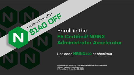 F5 Certified Administrator NGINX certification now available! The F5 Certification team is thrilled to announce that the first official F5 NGINX certification is now live! Introducing the F5 Certified Administrator NGINX certification. The NGINX Certification validates a candidate's understanding of how NGINX works and their ability to perform basic functions related to the administration of NGINX acting as a web and proxy server. To achieve the F5 Certified Administrator NGINX certification, candidates must be a part of the F5 Certification program and pass all four of the following NGINX exams: NGINX Management NGINX Configuration: Knowledge NGINX Configuration: Demonstrate NGINX Troubleshooting About the NGINX certification exams: Each exam contains 30 questions and is 30 minutes long. Each exam costs $50 USD. Each exam is delivered online through Certiverse and can be taken in any order. Preparation for the NGINX Certification exams begins with the NGINX OSS Blueprint. The NGINX certification is based on NGINX Open Source Software, not NGINX+. NGINX Certification FAQs. You can register here for the F5 Certification program to schedule NGINX exams. Note*: This link takes you to a non-F5 site where you will need to establish an account login if you haven not already done so.* Go to F5 Certification Program site for additional NGINX training resources. For additional information, refer to the NGINX Certification FAQ page. If you have additional questions, please email support@mail.education.f5.com And check out Buu Lam's conversation with Dylan Thomas, one of the first people to be NGINX Certified, to learn about how to prepare for the exam.