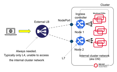 Introduction This article dives deeper in 2-tier deployments introduced in the previous article F5 BIG-IP deployment with OpenShift - platform and networking options yet we will start comparing a common Kubernetes/OpenShift architecture with a more capable and flexible architecture using BIG-IP. Although this type of deployment can be done with the BIG-IP in Layer 4 (L4) mode this article will focus in using the BIG-IP in Layer 7 (L7) mode which allows for more functionality and flexibility. A regular Kubernetes/OpenShift deployment is as follows: Typically, the External LB doesn´t add much added value and just spreads the connections across the ingress controller instances without any service intelligence. This article emphasizes on the added value of F5 BIG-IP with Container Ingress Services (CIS) by operating at L7. Additionally, it is described how CIS is ingress agnostic and can be used at is fullest regardless of the ingress controller, API manager, service mesh used, or even a combination of these! This 2-tier architecture can be seen next, where it is not only shown that traffic is sent directly to the ingress controllers without the NodePort indirection. In the figure, it can also be seen compared to a 1-tier architecture: ClusterIP and NodePort When using a 2-tier deployment, a key aspect that needs to be decided is how it is going to be sent the traffic to the ingress controllers. NodePort With other External LB solutions (ELB), the common way to send traffic to the ingress controllers in Kubernetes is by exposing these as NodePort. This option always works because the ELB doesn't need to deal with the CNI. In this case, when the ELB sends traffic to a node, the NodePort construct by default load balances the traffic to any node in the cluster where the ingress controller is. This means that there would be 3 hops before reaching the workload POD. These hops are: the ELB, the ingress controller, the NodePort, and finally the workload POD. This NodePort load balancing to other nodes can be removed by changing the externalTrafficPolicy from Cluster to Local in the Service definition. Thus reducing the number of hops from 3 to 2. ClusterIP Alternatively, the BIG-IP can send the traffic directly to the POD addresses, aka ClusterIP mode, without any translation or Kubernetes construct in between the BIG-IP and the ingress controller. This is specified in CIS with the --pool-member-type=cluster option and requires support of the CNI. Using OpenShiftSDN and ClusterIP is discouraged because this CNI is being deprecated and will not be covered in this article. When using OVNKubernetes, the BIG-IP sends the traffic without any tunnelling. At this moment, this requires that the clusters are in the same subnet as the BIG-IP. Which option to choose? If the OpenShift cluster is not in the same subnet as the BIG-IP or if the infrastructure doesn´t allow POD addresses traverse the segment (ie: because of a L2 firewall/micro-segmentation), then NodePort would need to be used. I would discourage the use of NodePort with externalTrafficPolicy: Cluster because it doesn´t allow to do adequate health check monitoring because each probe will be sent to a different ingress controller. Moreover, persistence and troubleshooting is more tricky too because of the additional hop that NodePort creates. If NodePort needs to be used, then externalTrafficPolicy: Local referencing the ingress controllers is recommended. If there is no problem in routing the traffic to the OpenShift nodes using the POD addresses, I would encourage using ClusterIP because it is a transparent method, where the application traffic is easier to track: there are no additional hops or address translations. OpenShift´s bundled ingress/router is HA-proxy; In on-prem OpenShift deployments, the default router instance is created using hostNetwork access. HostNetwork can also be used with CIS --pool-member-type=cluster mode. The IP addresses of the pool members will be the node addresses, but there will not be any indirection to the POD. The examples provided in the git repository mentioned in this article use ClusterIP but can be easily modified to NodePort if necessary. 2-tier per-service load balancing and health checking This type of deployment requires that the external load balancer, in this case the F5 BIG-IP, can take actions based on the L7 route path. This includes health-checking the application and performing TLS/SSL termination. From a Kubernetes/OpenShift point of view, the most remarkable is that it is needed to expose the L7 routes twice. That is, for a given L7 route there will be a manifest for the ingress controller and another L7 route manifest for CIS. This is outlined in the next figure: In the above figure, there is only one ingress controller instance with several replicas serving the same L7 routes. It is not relevant which ingress controller it is. This ingress controller can have defined its L7 routes with any resource type. This is transparent from the point of view of CIS. CIS only requires that the ingress controller can be referenced with a selector from a Service. This service is shown in brown. There will be a Service manifest for each L7 route for CIS. Even if all these services point to the same ingress controller instances. This allows you to: Monitor each L7 route´s backends individually. Have a clean NetOps/DevOps separation where DevOps can manipulate the ingress controller configurations freely and NetOps can control the publishing of these in the ELB. Ultimately make load-balancing decisions in a per-application basis The L7 routes for CIS can be defined either as VirtualServer, Route (as NextGen Route) or as Ingress resource types. Using the Ingress resource type is not recommended because of its limited functionalities compared with the other types. Overall, there will be a 1:1:1 mapping between the L7 routes defined for CIS, the Service manifests referenced by CIS´ L7 routes, and the L7 rou