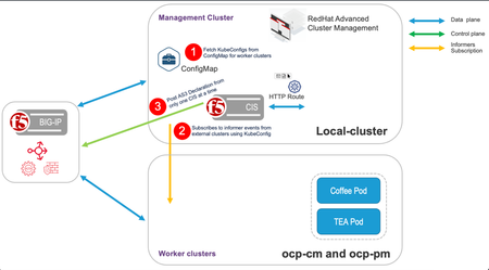 The following video tutorials and Github repo will help you learn how F5 Container Ingress Services (CIS) can integrate with Red Hat Advanced Cluster Management (ACM) to maximize scalability and provide a per-application blue-green strategy in an OpenShift multi-cluster environment. In this 20 Minute demo you will get a detailed understanding of: Redhat ACM running in a management cluster fetching KubeConfigs from the ConfigMap for worker clusters (Coffee Pod & Tea Pod) F5 CIS subscribing to KubeConfig and listening for events from worker clusters (Coffee Pod & Tea Pod) F5 CIS posting AS3 declaration to BIG-IP. BIG-IP executing all necessary commands to achieve desired end state (ie increase cluster resources to 6 instances per pod) Demo on YouTube video GitHub Repo repo Notes If you want to make sure the service doesn’t take any share of the overall traffic distribution, set the Route base service weight to “0”. Although the pool for the base service gets created (without any pool members for this case), the traffic is distributed among the extended services only. One more point to note is that in the extendedConfigmap mode is set to “ratio”. This is because currently CIS processes the weights only in two cases The route is an A/B route mode is set to ratio However, the cluster ratio doesn't play any role here as we have not defined any cluster ratio values for any of the clusters. So, each cluster will have equal weightage. Therefore, in this case, traffic distribution will be solely based on service weights. (which is the requirement for this case)314Views1like0CommentsF5 BIG-IP deployment with OpenShift - per-application 2-tier deployments