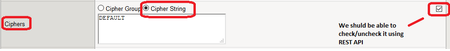 Hello, I am trying to locate virtual server configs in my F5 environment that are configured to log all traffic requests. Obviously, this has a detrimental impact to F5 logging performance. Is there a way to use the TMSH shell or REST API to interrogate the F5 appliance via a script and get a listing of all virtuals that use a "log all traffic" policy so I can change the policy and give our logging servers a bit of respite? Thank you, Kyle899Views1like3CommentsWhat is the REST API to check / uncheck checkbox client SSL profile custom cipher cipher string ?