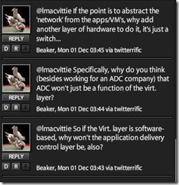 Christofer Hoff, better known as @Beaker to the Twitterverse, put on his devil's advocacy hat (yes, it really is a good color for him) yesterday and questioned whether there was a need for hardware application delivery solutions in the cloud. He postulated via Twitter that application delivery functions would become part of the cloud fabric and thus whether they were implemented in hardware or software was largely irrelevant. Generally speaking we're in agreement on that one. But then he really used that devil's advocacy hat and suggested that the application delivery control layer might be virtualized and software-based as well. Of course he also said "it's just a switch". [strangled sounds - that hat works really well] I'm going to ignore that for now because it's just not relevant to this conversation, but rest assured I'll come back and visit that one eventually. It isn't so much that application delivery needs to be a hardware solution as it is that the solution needs to have certain capabilities that are typically found in hardware solutions that are not always found in software solutions. Spreading application delivery functions like load balancing, protocol optimization, and security around the data center, essentially embedding it in the cloud fabric, destroys the ability of the solutions to perform their tasks. Most application delivery functions require that the solution mediate; that it be between the client and the servers it is managing. It's difficult for a device to act as a virtual access point for a web-site if the device is itself inside the data center. And given the dwindling supply of public IPv4 addresses and the slow adoption of IPv6, virtual servers a la load balancing technology is an absolute requirement for cloud computing environments. They can't be hanging around inside the environment because they necessarily need to be at the edge, mediating between the public (client) and private (servers) networks. Then there's the real meat: contextual networking. That's the ability of a solution to take into consideration context when applying policies and rules and functions to traffic and data. Understanding the context of a request and response - location of the client, type of client, type of response data, network over which a client is connecting, etc... - makes it possible to apply application delivery functions like optimization and acceleration and security more efficiently. In order to understand the client, you've absolutely got to have visibility into the client-side of the equation as well as the server-side. If you're nothing more than a service in the fabric, you aren't going to have that visibility - some other device or solution will. Without that visibility you can't easily obtain the context, and thus you aren't capable of adapting to what's going on right now - on demand. Let's say your cloud computing provider is able to provide compression (a common acceleration function) on a per MB compressed basis. In other words, you are paying additional fees based on the amount of data that's compressed. This might save you money in bandwidth fees because you're using less bandwidth, but those savings can easily be eaten up by inefficient solutions that compress everything regardless of context. If the provider has an intelligent solution that can take into consideration all the parameters involved in a request and reply, it can determine whether applying compression will (a) make a difference and (b) impede or improve response times. We all know some data - particularly images - don't benefit from compression. We also know that applying compression on responses that are small (typically under the network MTU and maximum ethernet packet size) can actually impede performance because it takes longer to compress than it would to deliver it raw. An application delivery solution, usually hardware but not always, can intelligently take into consideration the context of the request and response and make those decisions in order to more efficiently make use of compression to do what it was intended to do: improve performance and the end-user experience and, if applicable, reduce the costs associated with the service. Moving compression functions off servers and onto an application delivery solution further improves the capacity and utilization of the server, which can reduce the amount of compute processing required to run your application in the cloud and further decreasing costs. It's more efficient from a processing power standpoint, and it's financially more efficient. And you can't really do it if your application delivery solution is distributed across the fabric inside the data center as virtual images of software solutions. Could you deploy virtual images of software solutions at the edge, as a sort of edge cloud fabric? Yes. Can you deploy them willy-nilly throughout the internal cloud fabric? No. There are plenty of other reasons why hardware solutions will likely remain the best option for providing application delivery services in the cloud fabric: failover, load balancing, throughput, capacity, hardware accelerated functionality, performance, reliability, etc... But the fact is that in a virtualized environment there is going to be some intermediary necessarily providing core application delivery functions like load balancing and failover and availability assurance and it just makes sense to leverage that same device by employing as many application delivery functions at that point where context can be taken into consideration and the application delivered as efficiently as possible. Related articles by Zemanta Managing Virtual Infrastructure Requires an Application Centric Approach Cloud Computing: Is your cloud sticky? It should be. Infrastructure 2.0: The Diseconomy of Scale Virus Why you should not use clustering to scale an application Cloud computing could be dangerous warns Richard Stallman VCs Back Tools to Look Inside the Cloud240Views0likes2Co