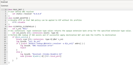 SNI (Server Name Indication) is an extension of the TLS protocol that is used by the client to indicate the hostname it is attempting to connect to at the start of the SSL handshake. In the case of the BIG-IP the SNI can be used to select which client SSL profile should be applied to the ingress traffic but it requires at least one client SSL profile to be attached to the virtual server. In other words the SSL data must still be decrypted. This iRule which is suitable for some SSLO use cases does not require SSL traffic to be terminated (i.e. decrypted) on the BIG-IP. It only needs a generic SSL persistence profile to be attached to the virtual server and this just to circumvent MCP validation issues. Once the CLIENTSSL_CLIENTHELLO iRule event is triggered, the SNI can then be determined and used to steer traffic. In this example below, once the SNI is found, an attempt is made to resolve it using DNS and then route the request using the BIG-IP to a gateway which could (in the case of SSLO) be a Secure Web Gateway device. Note SSL::extensions -type <extension type value> returns the opaque extension byte array corresponding to the specified extension type value, or an empty string if not found. Extension Type 0 is the server name. The "node" command is useful if you want to send traffic to a specific IP/port combination that is not defined as a pool member iRule [root@sslo:Active:Standalone] config # tmsh list ltm rule bluecoat ltm rule bluecoat { when RULE_INIT { set static::resolver "8.8.8.8" } when CLIENT_ACCEPTED { HTTP::disable } when CLIENTSSL_CLIENTHELLO { set s_sni "NULL" set sni_exists [SSL::extensions exists -type 0] if {$sni_exists} { binary scan [SSL::extensions -type 0] @9a* s_sni log local0. "sni: $s_sni" if { [catch "RESOLV::lookup @$static::resolver -a ${s_sni}" addrs] } { log local0. "DNS resolution error" reject } else { log local0. "Resolved: [lindex ${addrs} 0]" node [lindex ${addrs} 0] [TCP::local_port] } } } }2.4KViews2likes3Comments